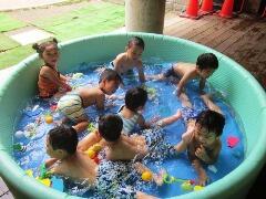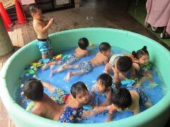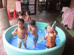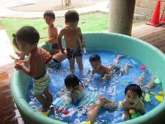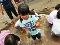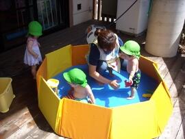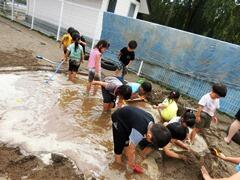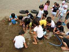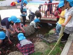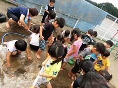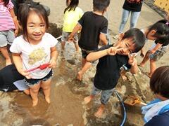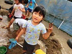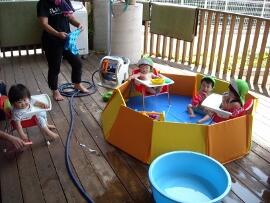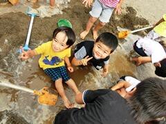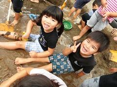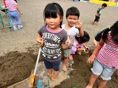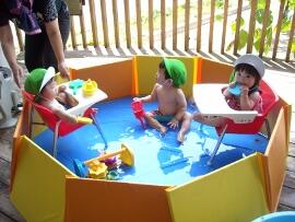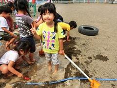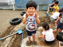 憧れていた ビオトープでの水遊び、大型滑り台…年中・年長児さんのお兄さんお姉さんと楽しむ姿もみられます!(^^)!