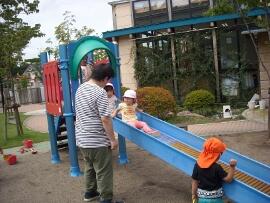 すべり台の階段も一歩、一歩ずつ上がって、一人ですべっています。