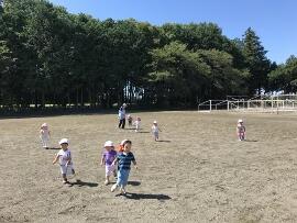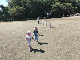 ひろ~い場所を お友だちとなぜか?一列に走っています(^^♪
