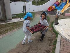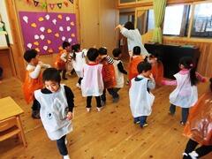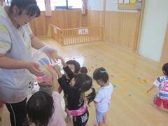 お外に出る前は、みんなで並んで「1.2.3・・・」と両手を叩きながら数えます。