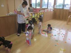 体操ごっこを楽しんだ後は、部屋へもどり「折り紙遊び」