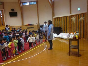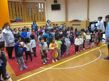 園長先生からのお話を聞いた後、みずはし保育園に仲間入り♡新しいお友達の紹介がありました。