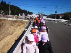 ポカポカ暖かいお天気の中、つくし組さんはたんぽぽ組のお兄さんお姉さんと散歩に行ってきました。さくら組さんのお友だちも混じって皆で楽しく歩いてきました☆