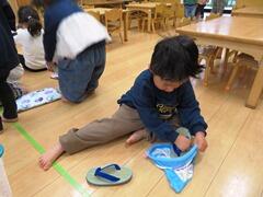 もうすぐすみれ組さんになるのを楽しみにしている子どもたち星 着替えやタオルの片づけなど、自分で出来ることを先生たちと頑張っていますにっこり