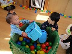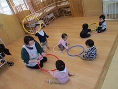園庭では、引き車をひいたり、日向ぼっこ…ブランコといろいろな玩具に興味を持ちダイナミックにあそんでます。