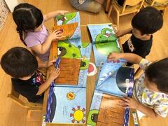 朝の活動で歌ったり踊ったり、名前を呼ばれて返事をしたり、最近は日付の確認をしています。そのあとは、製作活動や外で体を動かしてあそんでいます。