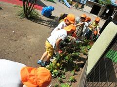 花壇のあいている所は、ゆり組さんがチューリップの球根を植える予定です