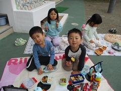 ゆり組さんと一緒に外でお弁当食べました