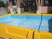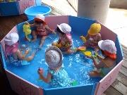 重くて大きいプールもお父さんたちの手にかかると・・・