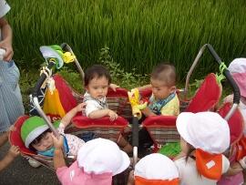 ゆり組さんは遠くまでの散歩は初めてだったので、お手伝いで入ってくれていたさくら組さんにリードしてもらい、交通ルールを守って歩きました。
