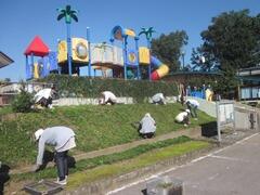 力持ちのお父さんたちはプールの解体&片づけ、お母さんたちには草取りをしていただきました。
