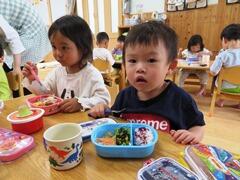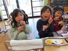 ゆり組・さくら組の子どもたちは、元気にあそんで給食をもりもり食べて