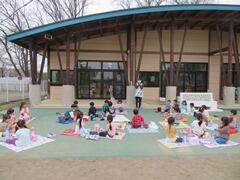 自分たちでレジャーシートを敷いて、「なんだか遠足みたいだね(^o^)/」