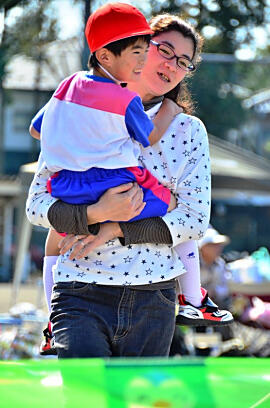 ゆり組親子による競技です。だっこやおんぶ親子でのふれあいを楽しみました。とっても嬉しそうね笑顔ですね。