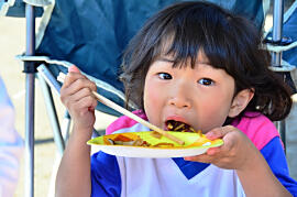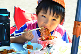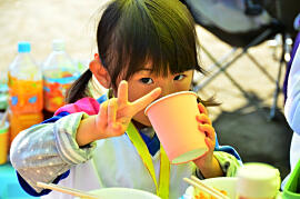 つくし組親子競技です。エプロンもとってもお似合いですね。クラス写真もばっちり撮れました。