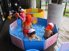 すっかりプールあそびにも慣れ、ワニ泳ぎやバタ足をして動きがダイナミックになってきました!