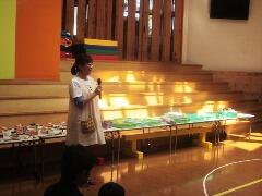 この日は朝からあいにくの雨となり、ホールでの集会となりました。