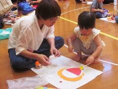 スポンジのスタンプは特に喜んでいました♪キレイに押すことができて、先生も大満足(*^_^*)(笑)