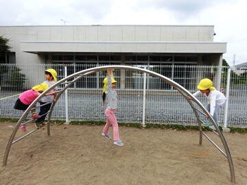 棒が四角だったりまるだったり、 棒がないところもありますよ。みんな体を動かして考えて登ったりおりたりしていました。これからもよろしくね(^O^)/ジャングルジムさん♡