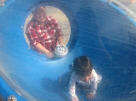 ジャングルジムをひとまわり、そして触れてみる…中に入ってみる… 登ってみる…