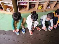 自分たちで草履を履くことができるようになってきました。あと少しでたんぽぽ組!!もう少し練習して足踏みまでできるようにしちゃうゾ!!階段やスロープの上り下りは難なくできるようになってきました