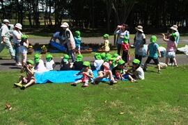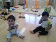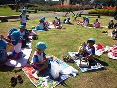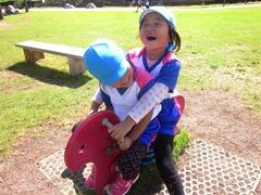 0,1,2歳児の子どもたちは、おひさまの光をいっぱいに浴びて遊びます(*^_^*)