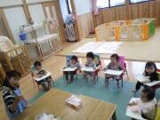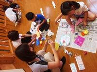 ひらがなに興味関心をもってきた子ども達。先生の合図で製作をゲット!名まえをみてお友達に渡すゲームです。「なつかしい~ 」なんて言いながら作品を月ごとにまとめました。