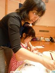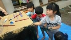 体を動かした後は、室内にて… 年長児は「ザ・書初め」
