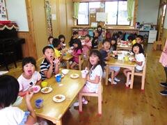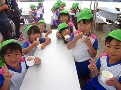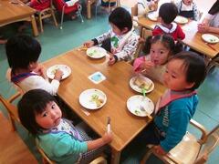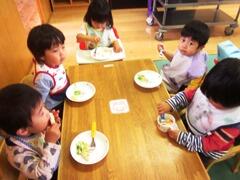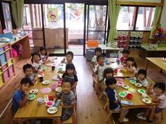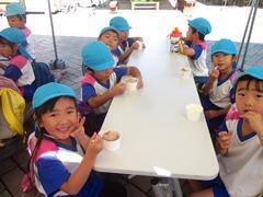 保育園に戻り、おうちの人が作ってくれたお弁当を食べました!!