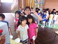 子どもたちは真剣(-_-メ)園長先生も真剣です。