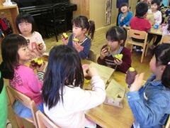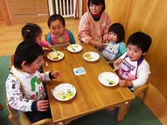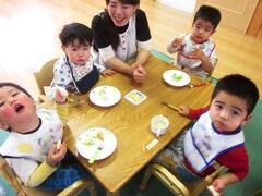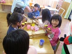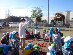 りんごのとり方を教えてもらっています。 みんなの真剣な顏、みてください☆