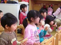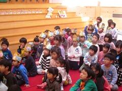 すみれ組 たんぽぽ組 ゆり組 さくら組は、元気いっぱい 豆まきのうたをうたい、