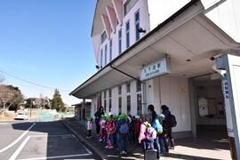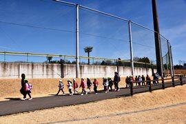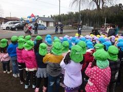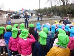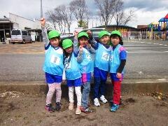 交通ルールを守って旧園舎跡まで歩きました。みんな真剣です(*^_^*)