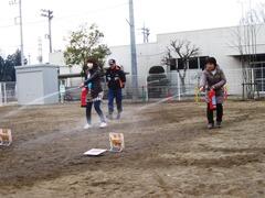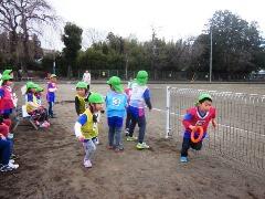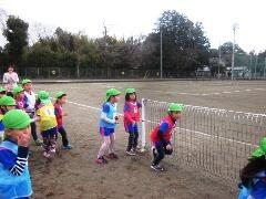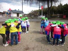 風がとっても強くて先生の帽子が飛ばされてしまいました。それを見た子どもたちは大笑いでした(^_^)v