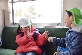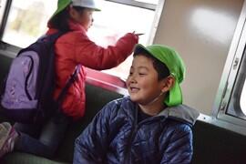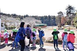 10時にみずはし保育園を出発!! 久下田駅に向かいます。久下田駅では スイカ電車?!を見ることができました。赤と緑でスイカ電車?子どもたちが呼んでます(^^♪ ここから七井駅→益子北公園へ!!