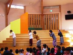 1.園長先生からのお話 2.先生からダンスのプレゼント♪「よさこいソーラン琉球王」(お遊戯会で踊ったね)