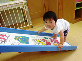 手足を使ってすべり台の斜面や階段を登れるよー!