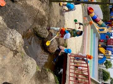 園庭に出ると子どもたちはすぐにかばさんとライオンさんにまっしぐら!