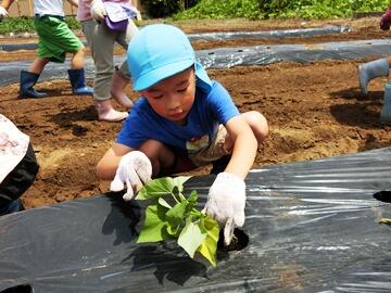 畑についたら、さっそく苗を植えていきます♪