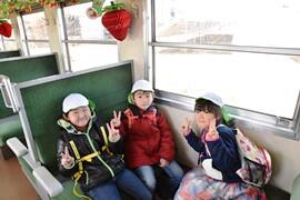 10時にみずはし保育園を出発!! 久下田駅に向かいます。久下田駅では スイカ電車?!を見ることができました。赤と緑でスイカ電車?子どもたちが呼んでます(^^♪ ここから七井駅→益子北公園へ!!