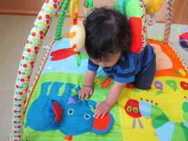 はらぺこあおむしのベビージムが大好き手を伸ばして触ろうとしたり、手が届くとブンブン振り回したり、カラフルなおもちゃを見つめたり…楽しそうな姿に毎日癒されている先生たちです