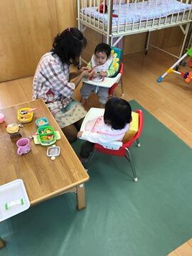 お母さんたちはひとりで食べられるように工夫してくれます。