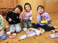 いっぱい遊んだから、お腹すいちゃった~。保育園の給食おいしいよ~。