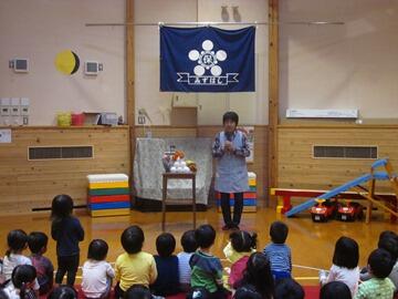 園長先生の話しの後は・・「つき」の歌を大きな声でうたいました♪♪