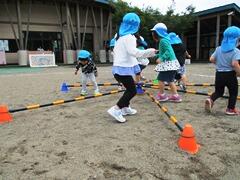 ワクワク冒険!ちょっとしたミニアスレチックだね!!うさぎさんみたいにジャンプ♪横向きでジャーンプ♪リズムに合わせてジャンプ♪ いつの間にかいろんなジャンプができるようになったね!!大発見!!