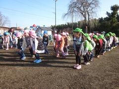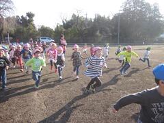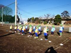つくし組さん、お部屋に入る前には先生と一緒にマラソンします(^^♪