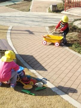 0,1,2歳児の子どもたちは、おひさまの光をいっぱいに浴びて遊びます(*^_^*)