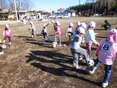 ゆり組さんからさくら組さんにバトンタッチ。 さくら組さん最後のサッカー教室(^^♪