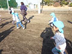 つくし組さん、お部屋に入る前には先生と一緒にマラソンします(^^♪