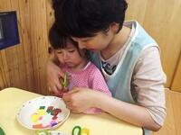「これ貼ってみる?」「上手に切れたね」親子の会話がはずみます。